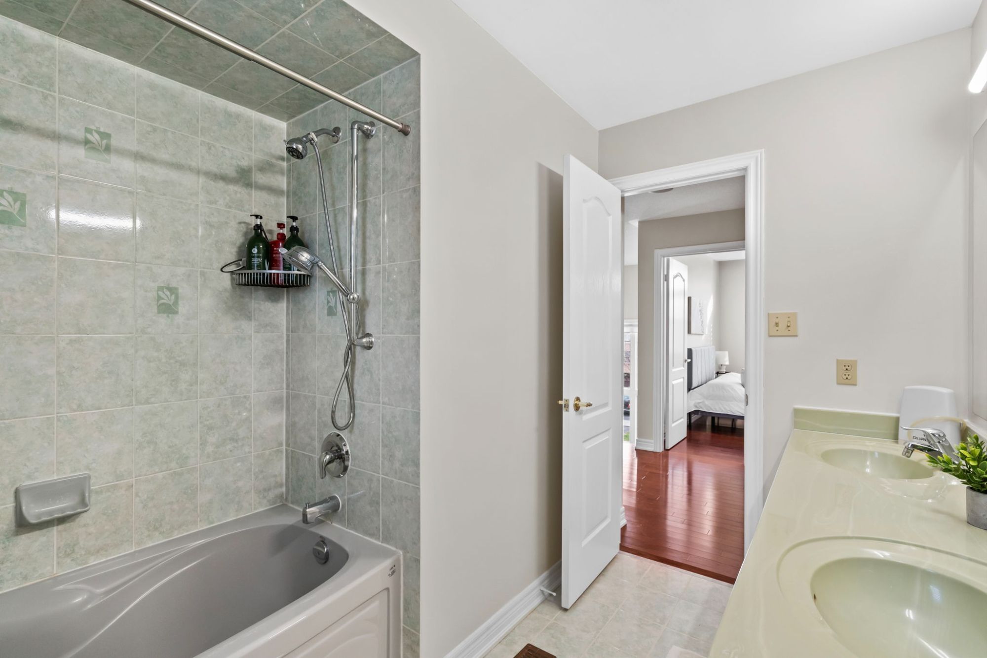 Step inside to a bright main floor office with soaring 12-foot ceilings, elegant oak railings, and freshly painted interiors that feel move-in ready. California shutters throughout offer the perfect balance of natural light and everyday privacy. The gourmet kitchen is the true heart of the home, featuring a gas stove, a walk-in pantry, and an upgraded faucet with a built-in filtration system. A whole-house internal speaker system keeps music flowing through every room, from morning coffee to bedtime stories.