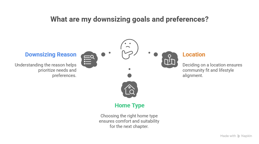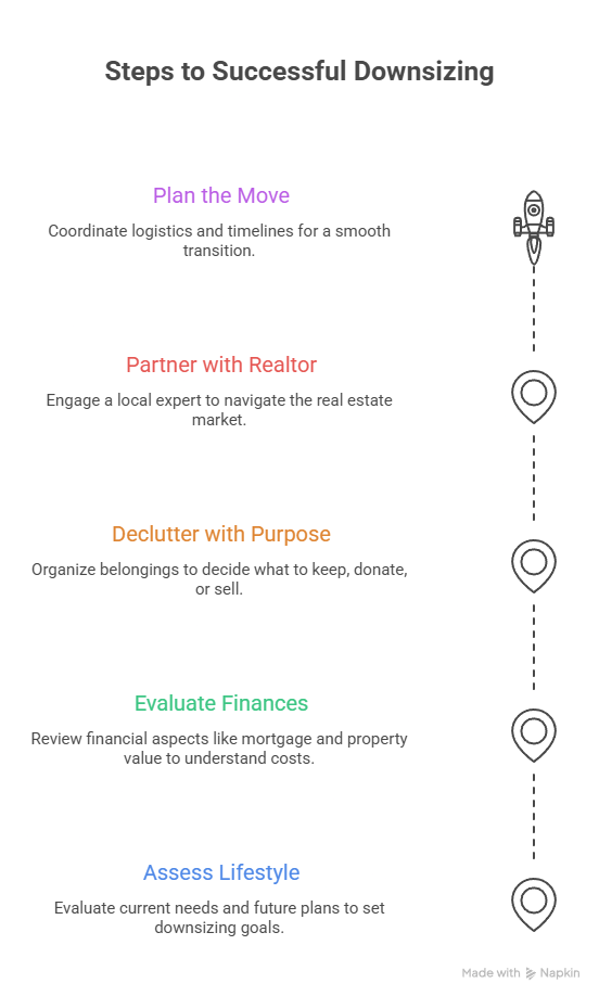 Downsizing your home is a big life decision whether you’re an empty nester, retiring, or simply looking to simplify your lifestyle. The first thing to do when downsizing is to evaluate your needs and goals.