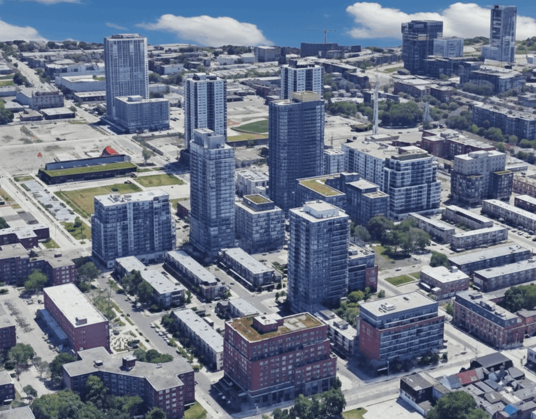 Regent Park stands out as one of Toronto’s strongest value plays in 2026. Following years of large scale revitalization, the area now features modern mixed income towers, retail, and community amenities. Condo prices around $585,000 remain well below the downtown core average, while proximity to TTC lines and employment hubs supports rental demand.