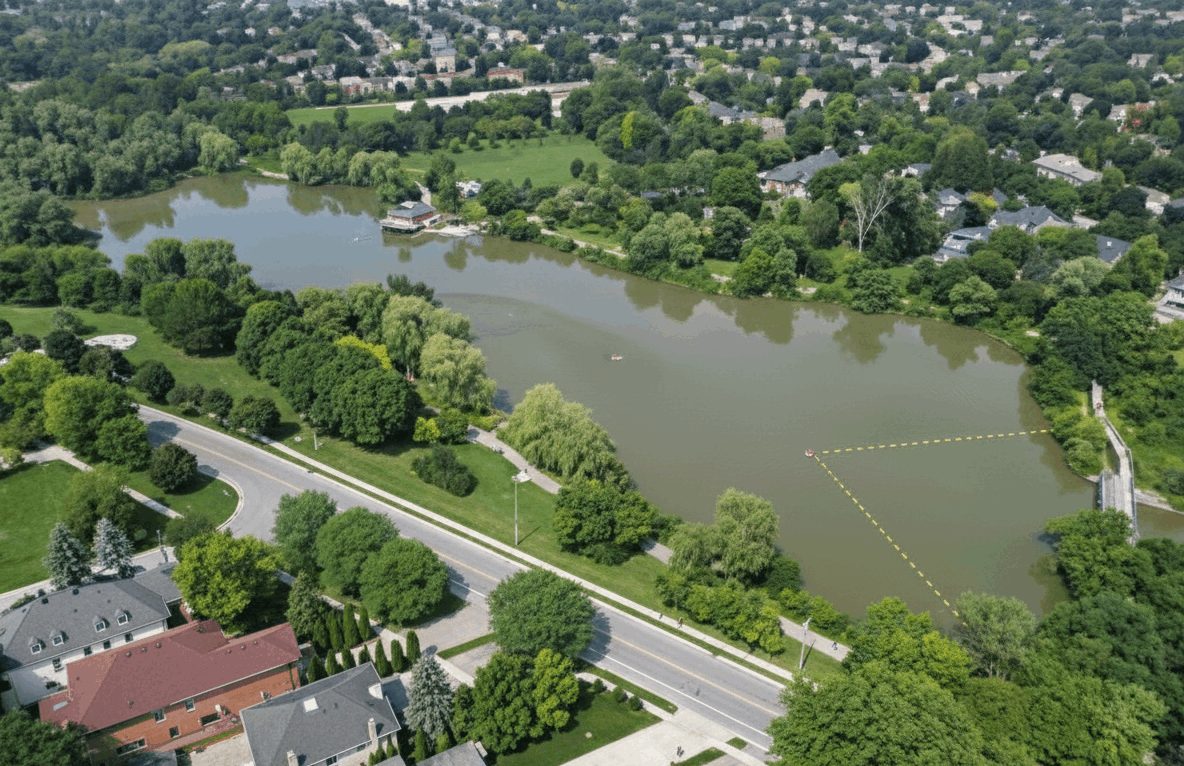 Toogood Pond Park is one of the most iconic picnic destinations in Unionville, Markham real estate. Shaded picnic tables overlook a scenic pond filled with ducks and geese, creating a peaceful backdrop for family meals.