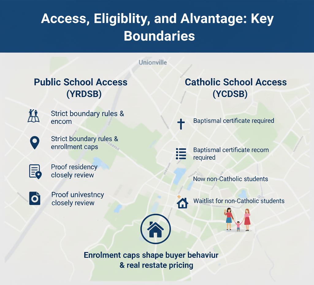 Neighbourhoods zoned for elite Catholic schools, such as Cachet, Berczy, and parts of Unionville, often see 5 10% home price premiums compared to similar areas outside those boundaries. Public school zones with consistently high rankings, like Wismer and Angus Glen, also remain extremely competitive.