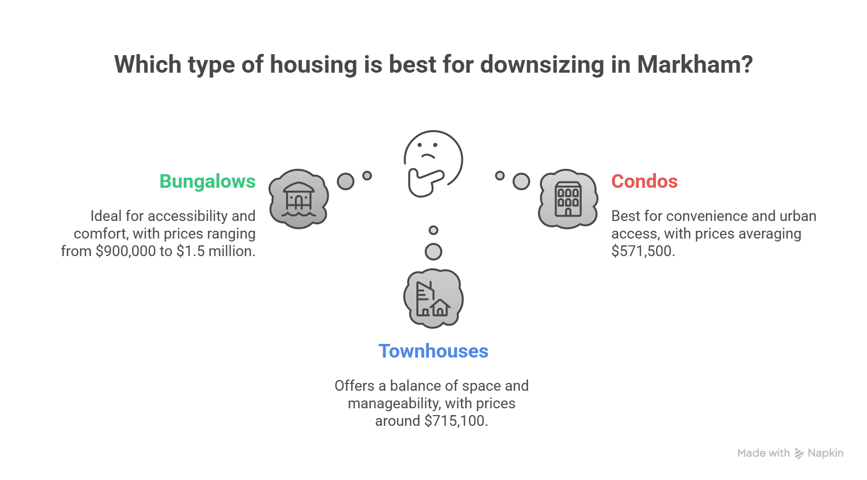 The cost of downsizing in Markham can vary significantly based on the type of property, its location, and specific features. While the goal of downsizing is often to reduce housing expenses, it's important to consider all financial aspects, including purchase price, property taxes, maintenance fees (especially for condos and townhouses), and potential renovation costs.