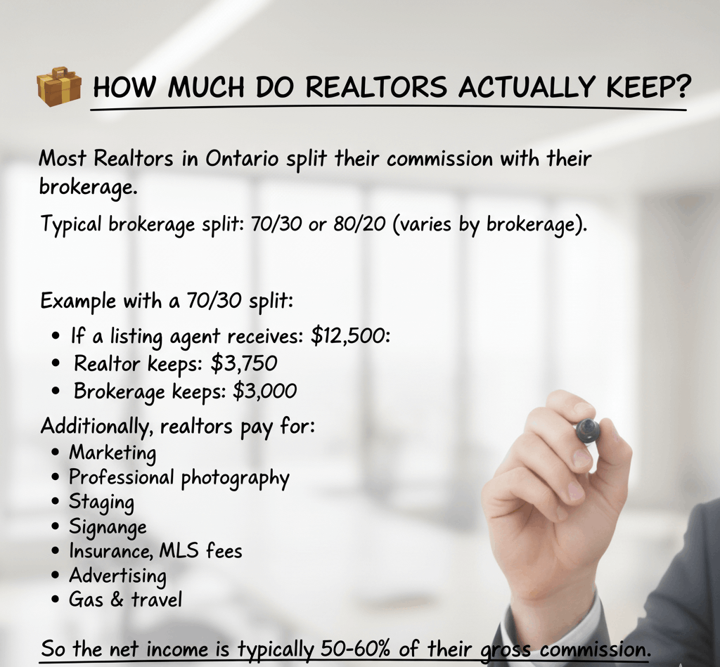Most Realtors in Ontario split their commission with their brokerage.