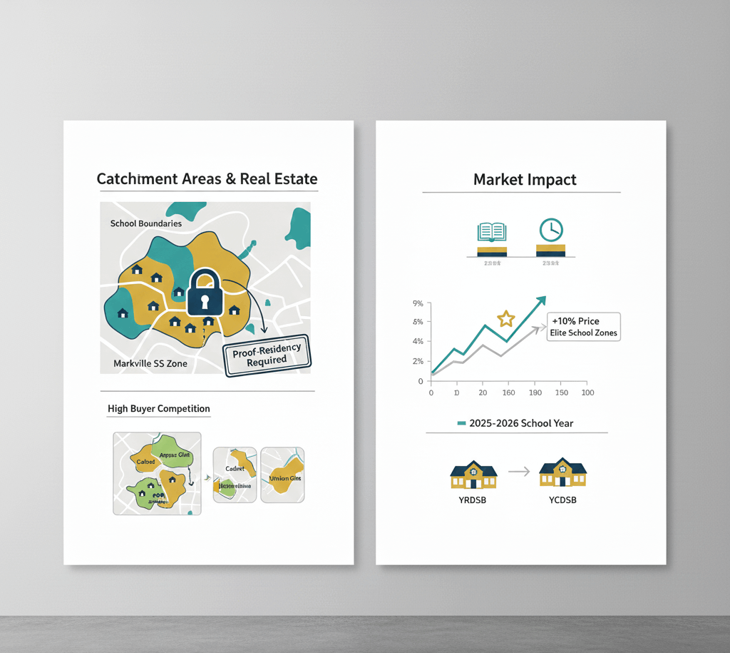 For the 2025 to 2026 school year, capped schools such as Markville Secondary School are rejecting out of zone applicants, making proof of residency essential. Parents routinely verify addresses using official board boundary maps before purchasing.