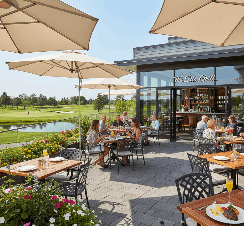 The Silo Grill offers a modern dining experience with steaks, brunch, and patio views overlooking the golf course. It blends upscale dining with lifestyle amenities, making it a highlight for residents who enjoy resort-style experiences just minutes from home.