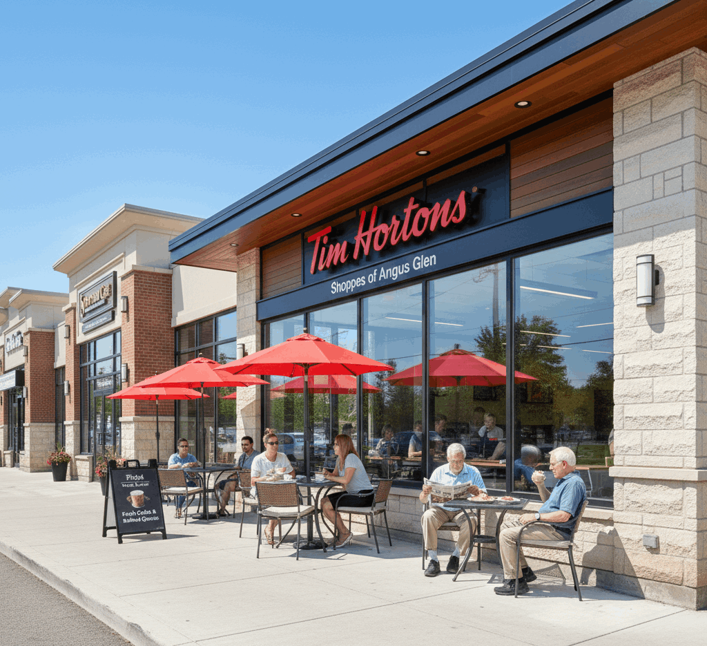 No neighborhood guide is complete without Tim Hortons. A classic Canadian favorite, it provides coffee, breakfast items, and quick bites. Tim Hortons anchors the plaza as a social hub where neighbors connect during morning routines or casual meetups.