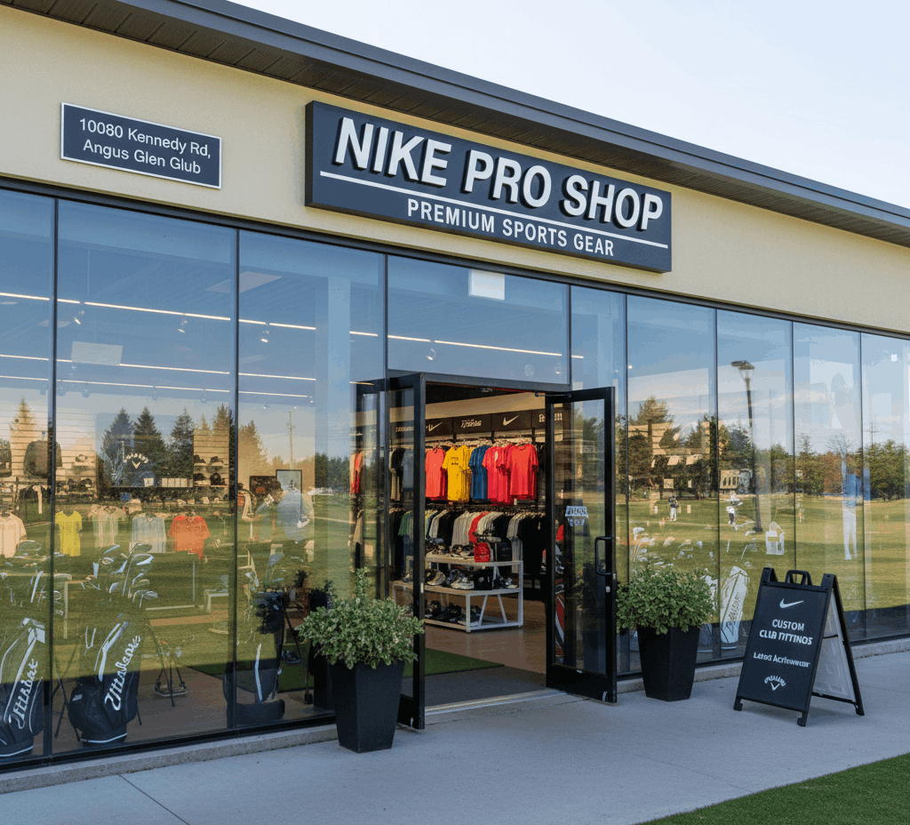 The Nike Pro Shop is a 2,700 sq ft store stocked with Nike, Callaway, and Titleist gear, along with custom fittings and activewear. It caters to golf enthusiasts and fitness-focused residents, reinforcing Angus Glen as a neighborhood for active lifestyles and community engagement.