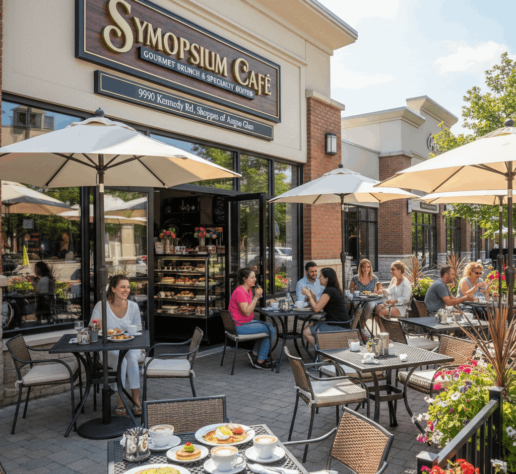 Symposium Café is a trendy, all-day café offering gourmet brunch, specialty coffees, and decadent desserts. Its lively patio and welcoming ambiance make it a perfect spot for social mornings, casual work breaks, or weekend catch-ups. This café captures the community spirit of Angus Glen and adds a touch of local charm for residents.