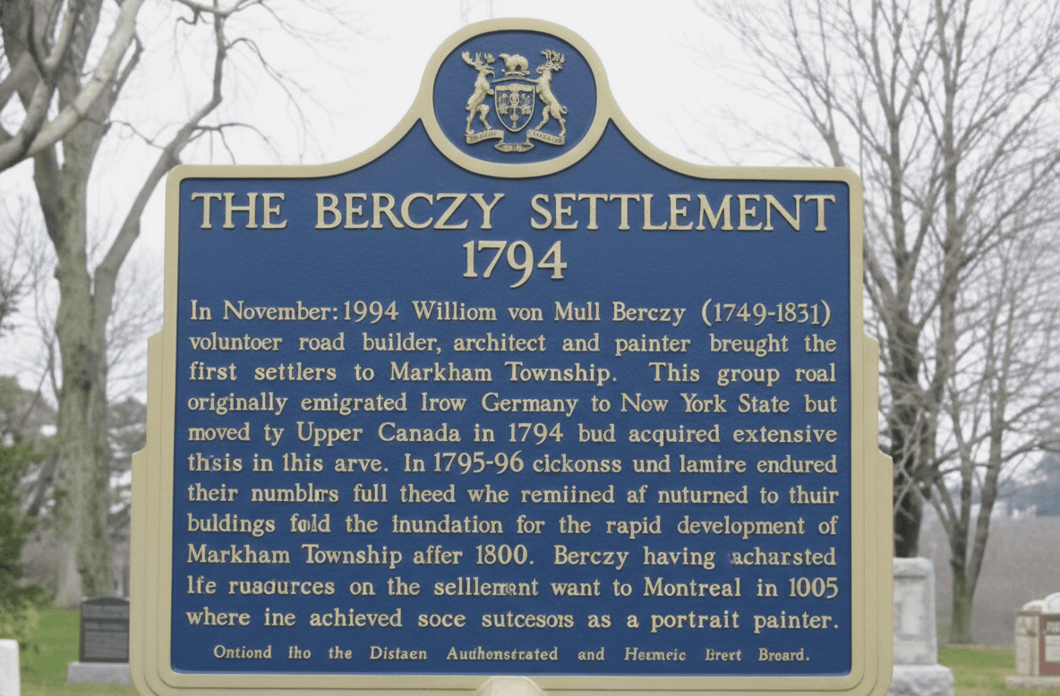 Markham was founded in 1794 by William Moll Berczy, who led 64 German families to settle the “German Company Lands” after negotiating a 64,000 acre grant with Lieutenant Governor John Graves Simcoe, who named the township after Archbishop William Markham.