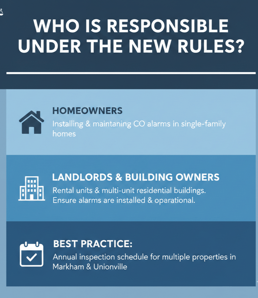 Ontario is tightening carbon monoxide (CO) safety regulations starting January 1, 2026, and these changes directly affect homeowners, landlords, condo buyers, and sellers across Markham, Unionville, and York Region.