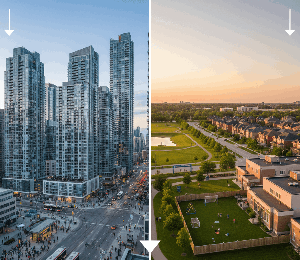 While Markham and Unionville appeal to families seeking space and top ranked schools, Toronto offers urban convenience and walkability.