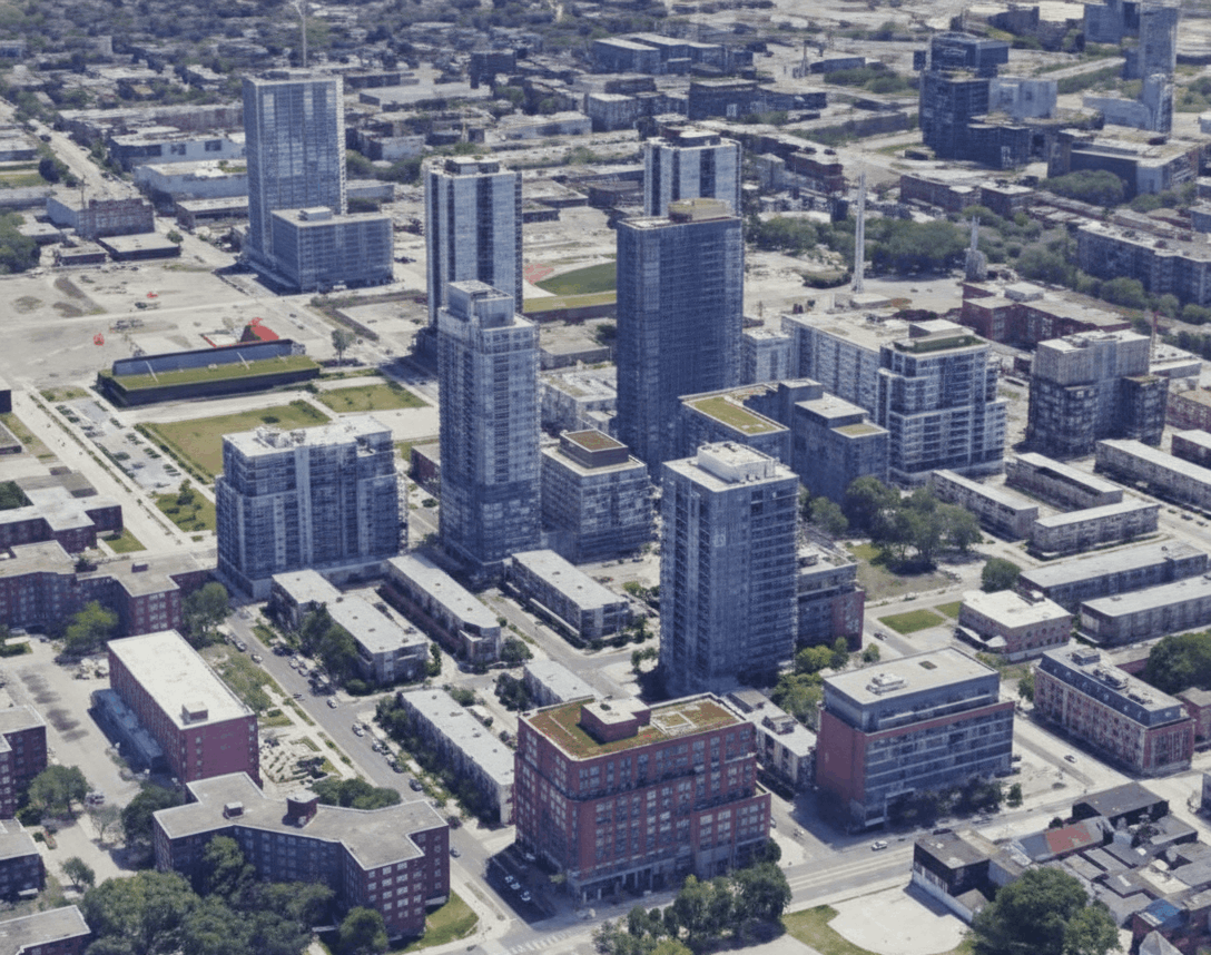 Regent Park stands out as one of Toronto’s most transformed neighborhoods. Following a multi phase revitalization, condo prices now average around $585,000, with select new build units starting near $469,000. The area benefits from walkable access to the downtown core, community facilities, and TTC routes.